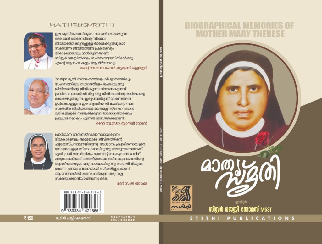 A significant highlight of the memorial day was the publishing of the biographical sketches of Mother Mary Therese, written by the sisters of MSST. The work was edited by Sr. Jessy Thomas, bringing together inspiring reflections on the life, spirituality, and mission of the revered Mother.